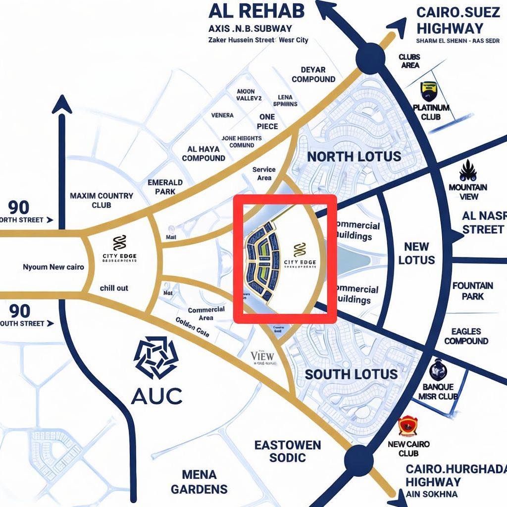 – يقع الكمبوند بالقرب من مسجد مصر والبرج الأيقوني